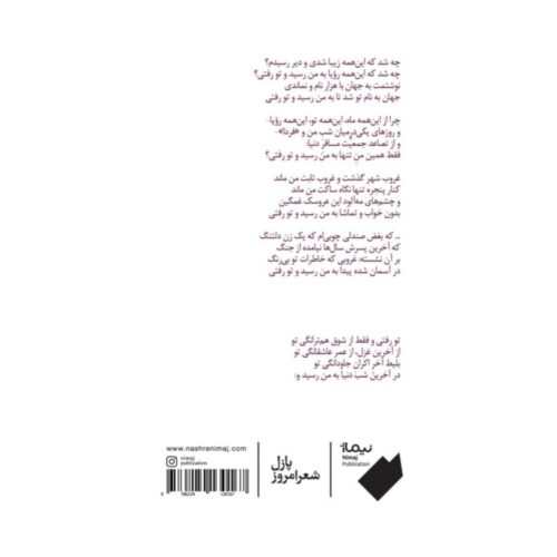 کتابی که در آن غزل، نه فقط فرم که فلسفهی زیستن است. غزل عهد جدید با زبانی شاعرانه، اندیشهمحور و گاه عاشقانه، تلاش میکند غزل را از نو تعریف کند؛ نه در تقابل با سنت، بلکه در گفتوگو با آن.